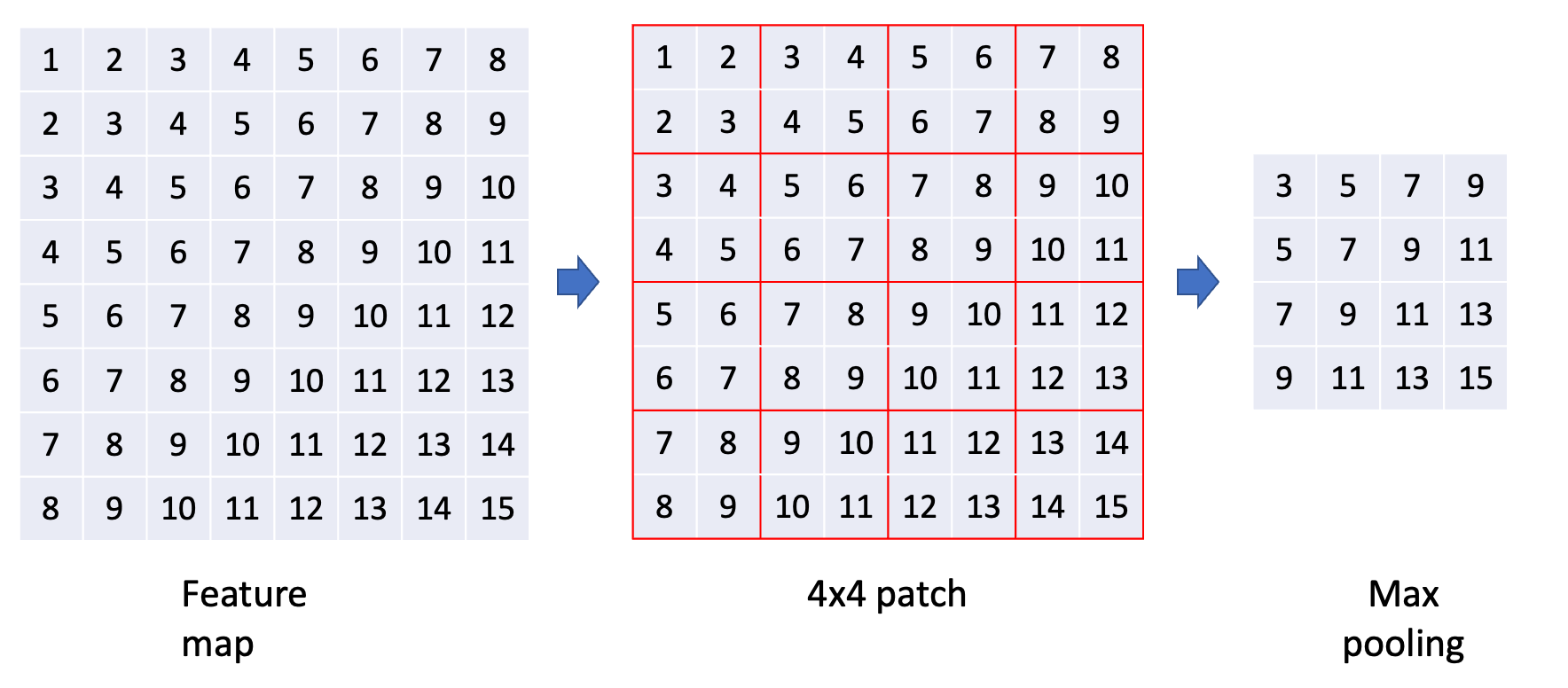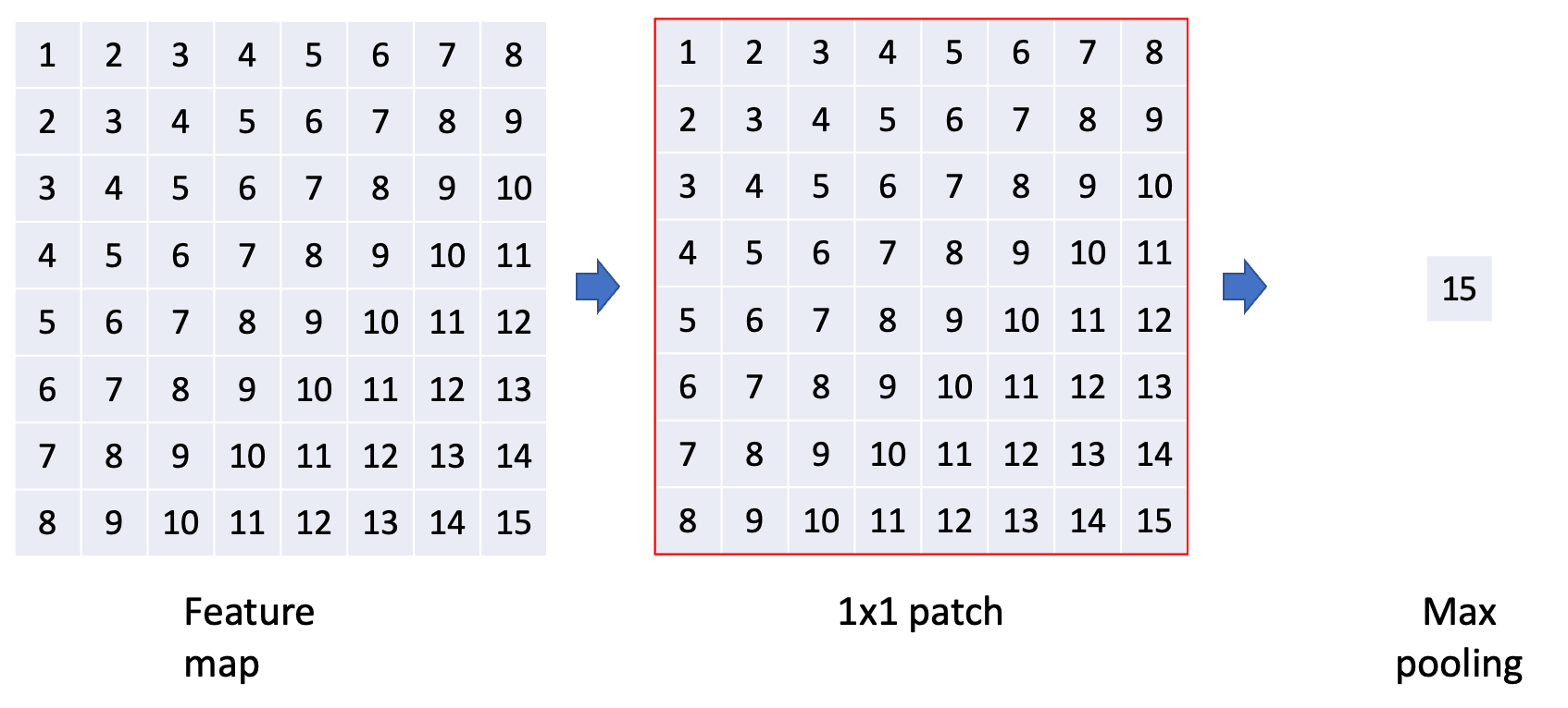 위의 SPP를 실제 예시를 들어서 설명해 보겠다. 임의의 feature map이 있다고 가정했을때 4x4, 2x2, 1x1 patch를 각각 적용해서 pooling한 output이 존재한다. SPP output을 flatten하여 concat하면 classification을 위한 FC layer에 연결될 준비가 끝난 것이다.